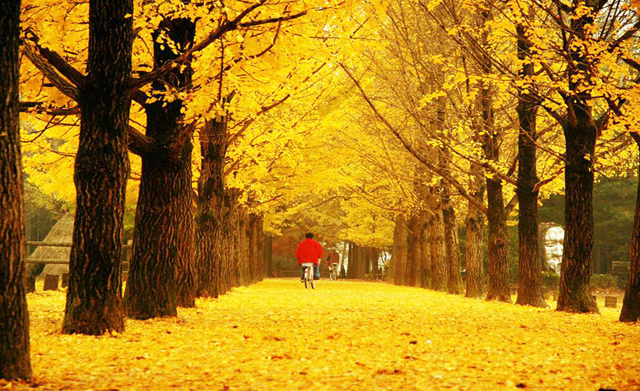 Mùa Thu với thời tiết không thể tuyệt vời hơn, từ 10~20 độ là nhiệt độ chuẩn so với một đất nước đại hàn như nơi đây. Khoảng trung tuần tháng 10 đến đầu tháng 11 là mùa lá vàng đẹp đến ngỡ ngàng của xứ sở kim chi. Nếu bạn là người yêu phim ảnh Hàn Quốc, chắc sẽ không khó để tìm được những bộ phim được quay rất nhiều vào khoảng thời gian này. Giới trẻ Hàn Quốc dù bận rộn vẫn luôn dành thời gian để đi uống trà, ngắm cảnh, đi picnic với gia đình và chụp một vài tấm ảnh dưới nền lá vàng rực khó cưỡng.