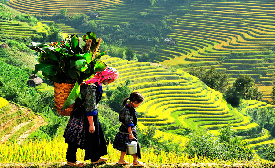09h00: HDV đưa Quý khách đi tham quan bản Lao Chải – Tả Van dọc theo thung lũng Mường Hoa thơ mộng với những thửa ruộng bậc thang lúa chín vàng trập trùng như dải lụa trước mắt. Khám phá cuộc sống đơn sơ và giản dị của người Mông Đen và người dân tộc Dáy.