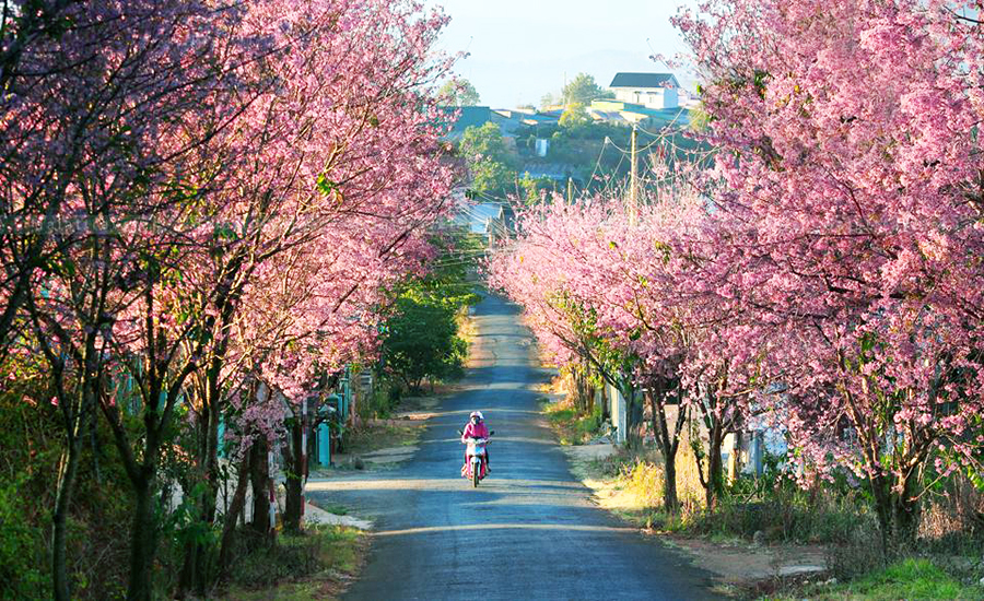Đà Lạt đẹp quanh năm, nhưng mỗi tháng trong năm lại có những đặc trưng riêng. Từ tháng 2 đến tháng 4, Đà Lạt bước vào xuân, có hoa phượng tím, hoa mai anh đào đang nở rộ khắp phố.