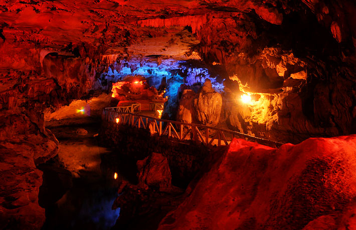 Động Ngườm Ngao - chiêm ngưỡng khu “tứ trụ thiên đình” với những cột đá trông như cột chống trời, khu châu báu là những núi nhũ lấp lánh ánh vàng, ánh bạc.