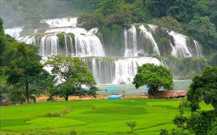 Chiều: Quý khách tham quan: Thác Bản Giốc - Một trong những dòng thác hùng vĩ nhất Việt Nam tại biên giới Việt - Trung, với những khối nước khổng lồ từ độ cao 30m đổ xuống trông xa như ba giải lụa trắng tuyệt đẹp.